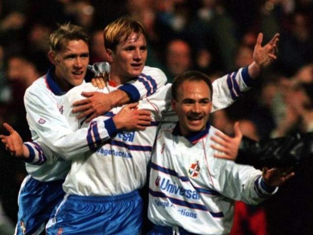 不过,约翰·哈特森并不后悔自己离开阿森纳的决定。他加盟西汉姆联之后,日子过得相当安逸,不仅稳坐主力席位,还能保证自己的进球效率。1997—98赛季,也就是约翰·哈特森为西汉姆联效力的第一个完整赛季,他取得15粒联赛进球,一度对英超金靴发起冲击。要知道,这个赛季的英超金靴得主,不过就是18粒入球而已。约翰·哈特森在1997—98赛季的出色发挥,让他力压当时在曼联风光无限的吉格斯,当选威尔士足球先生。然而,他战胜吉格斯的喜悦并没有维持多久,他就在队内训练时,把自家队友贝尔科维奇狠狠锤了一顿……这次事件,后果相当严重。约翰·哈特森在西汉姆联的处境变得极其尴尬,等到1998—99赛季的冬窗,西汉姆联干脆就引进了意大利老将迪卡尼奥,只为取代约翰·哈特森。东家的意思已经很明显了,约翰·哈特森自然不会赖在队里。同样是这个冬窗,这个与队友同室操戈的坏小子,直接转会去了温布尔登。然而,他加盟温布尔登的时机着实不好,这支球队已经没啥心气了。1998—99赛季,温布尔登险些降级。1999—00赛季,温布尔登终究丢掉了英超资格。